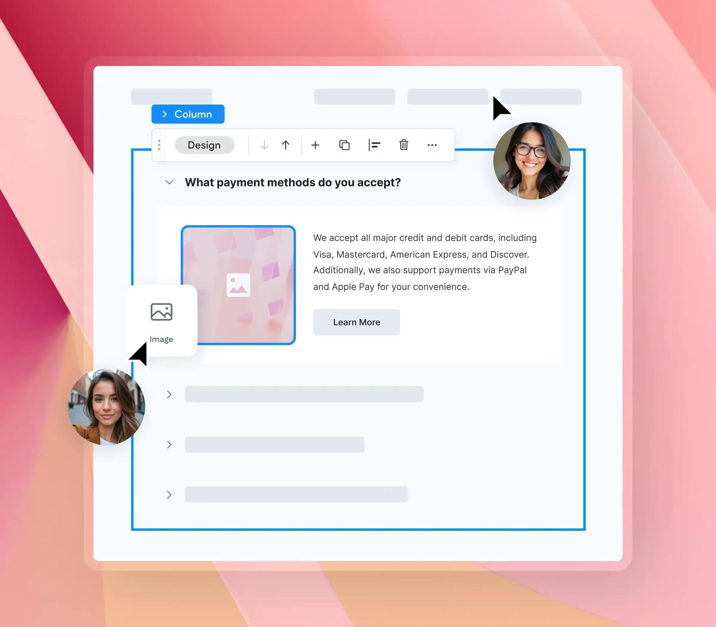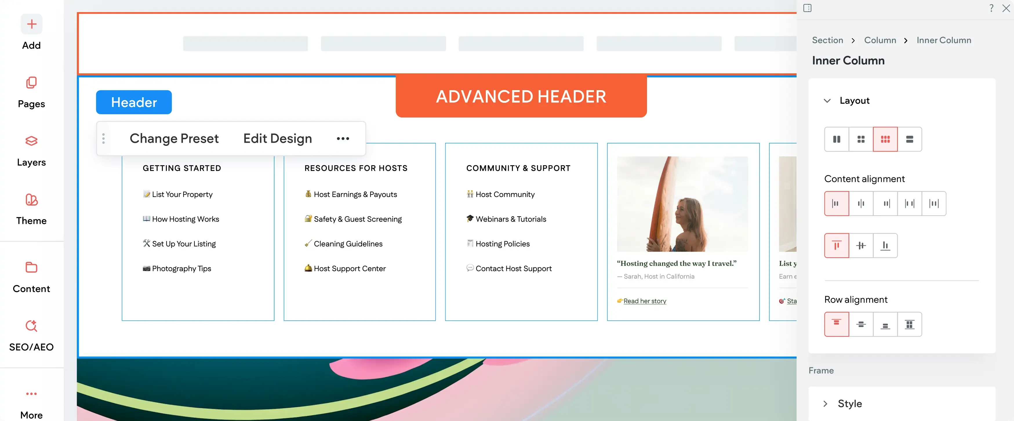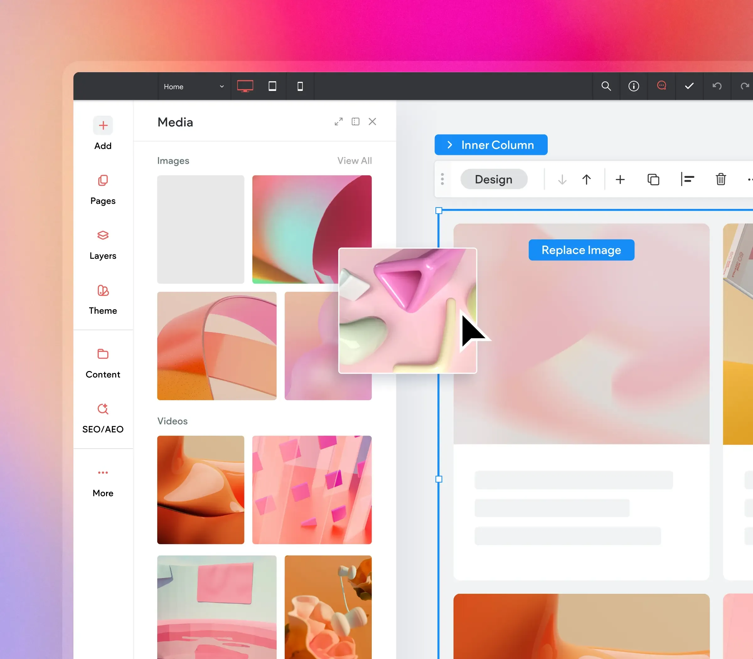 Create fully custom websites using a visual editor that gives you complete control — without writing code.