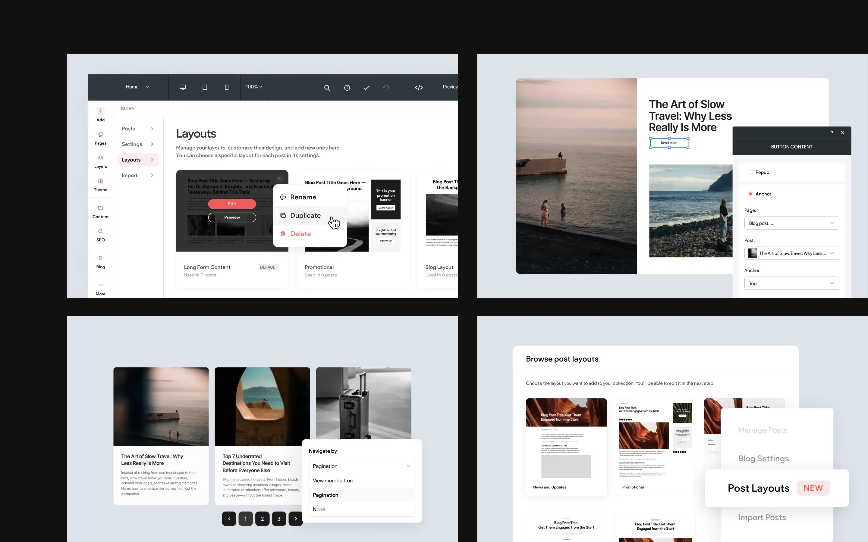If you use the blog inside the Without Code editor, you’ll notice a few new improvements that make it easier to create different post layouts, experiment with blog designs, and guide readers toward more of your content. These updates give you more flexibility when creating blog posts, along with a few workflow improvements that make managing your blog faster and easier.
