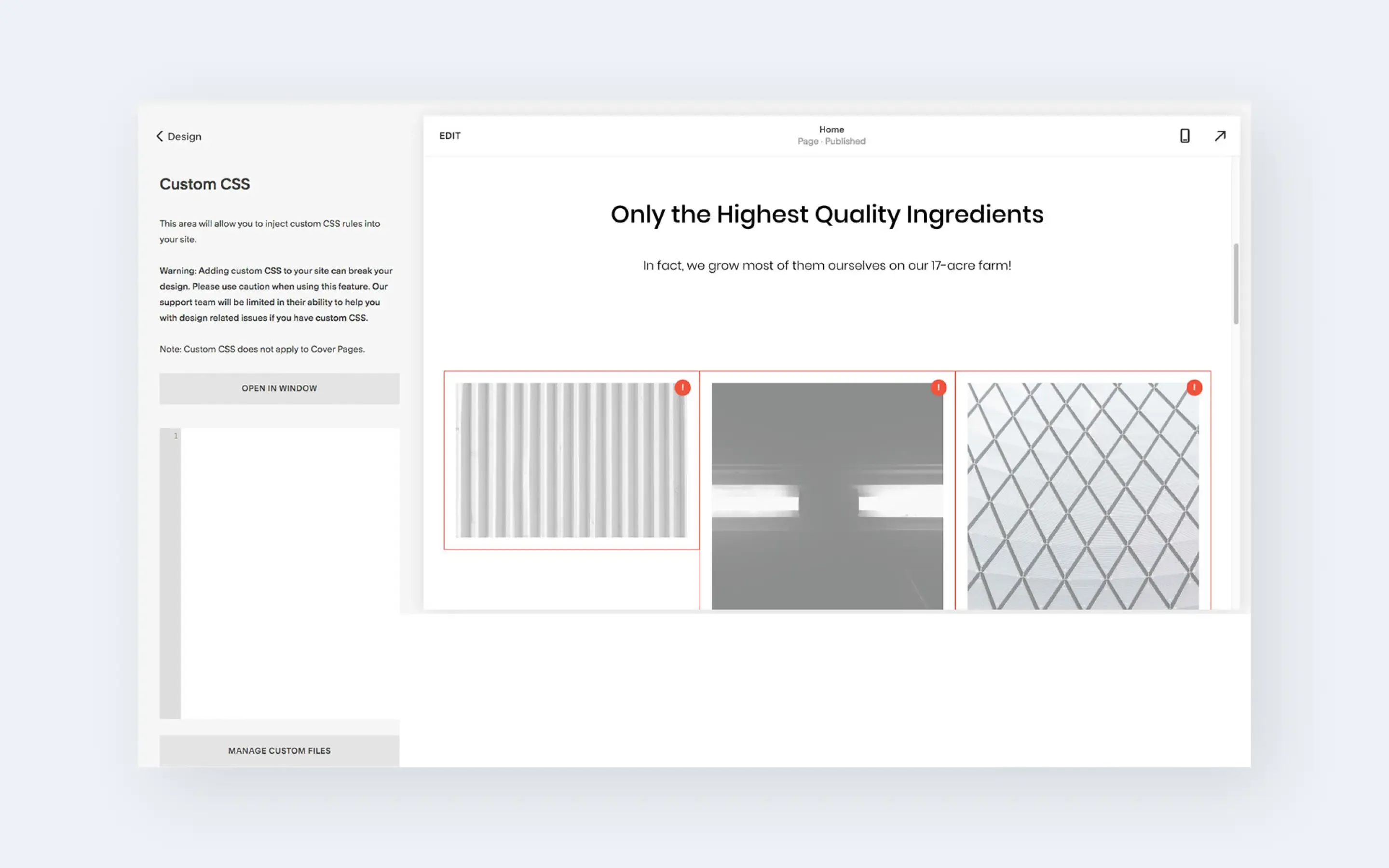 Site Modification: if you expect to require additional functionality from what you see in a template, or if you think you may need to make changes to your site in the future, this will be more challenging in Squarespace. Limited access to certain functionalities mean that some things may require hiring a developer, even to achieve simple things such as logo positioning and padding.