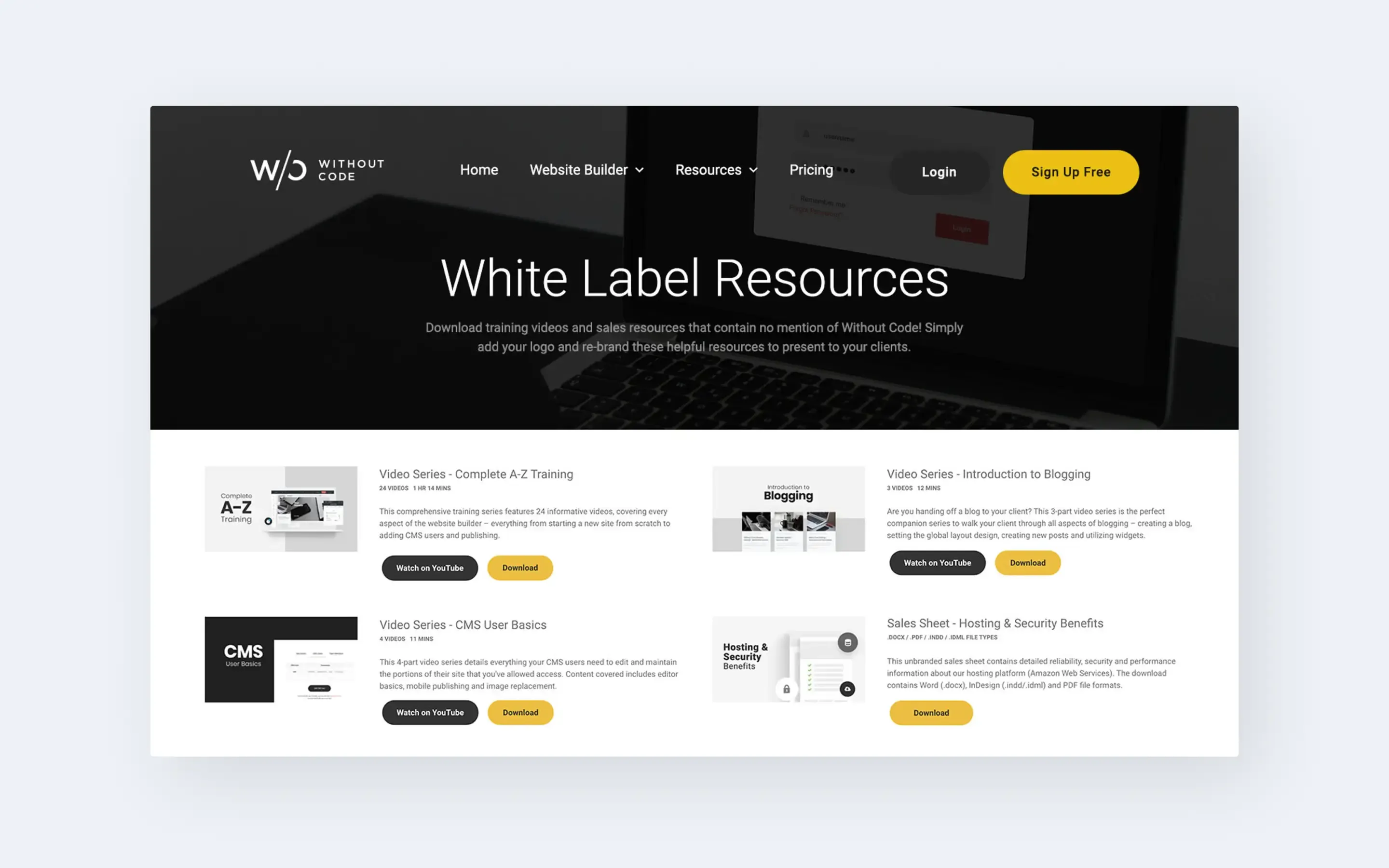 White Labeling: Only Without Code offers white label resources. If you expect to build sites for clients, Without Code is the clear choice.